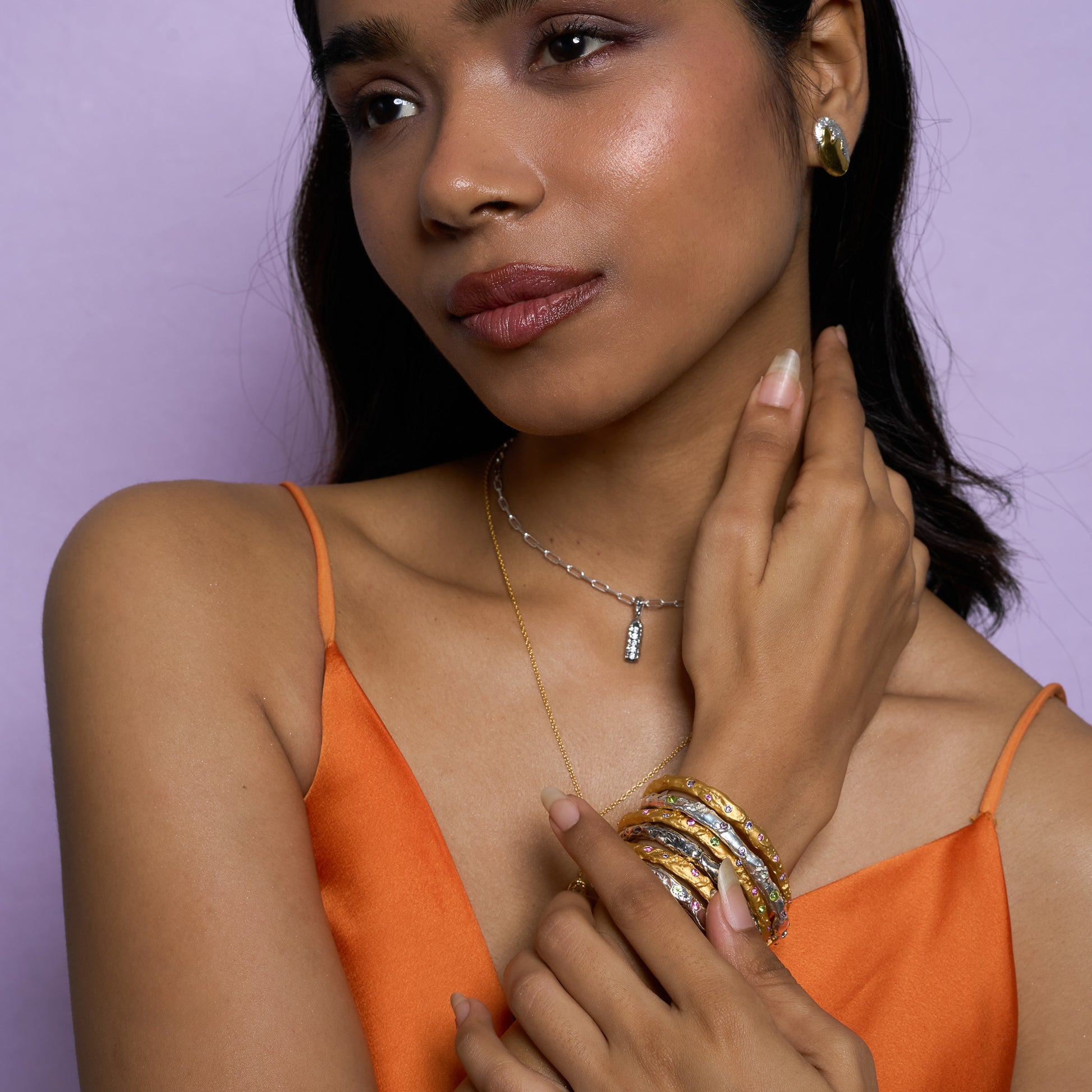 Sculptural and mood-shifting, this stud flows like a lava drop frozen mid-fall. A soft power move for your everyday ear stack.