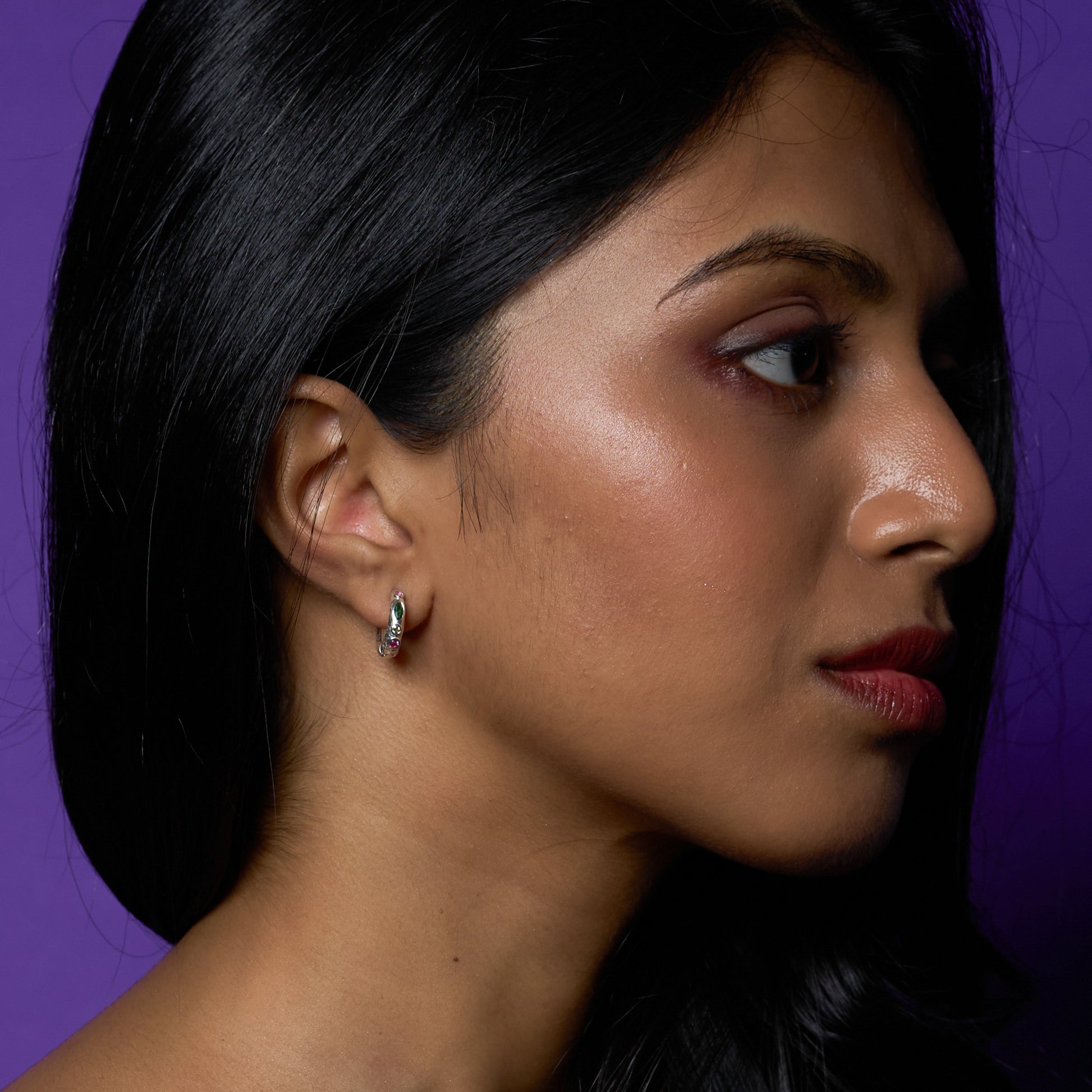 Maximalist’s mini hoops. This one’s all curves, colour, and unapologetic charm — just the right dose of drama for everyday ears.